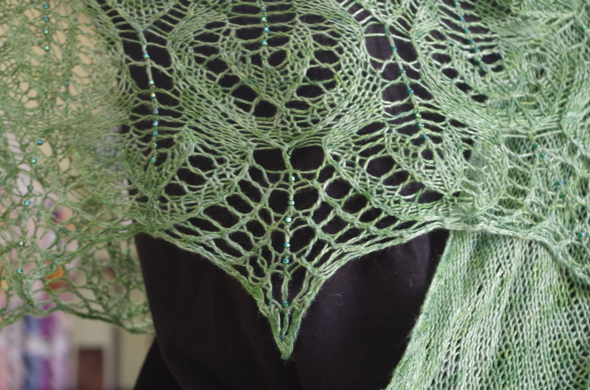 Lyra's Song for Lace Weight knitted shawl pattern by Kay Meadors for Fiberlady Yarns.