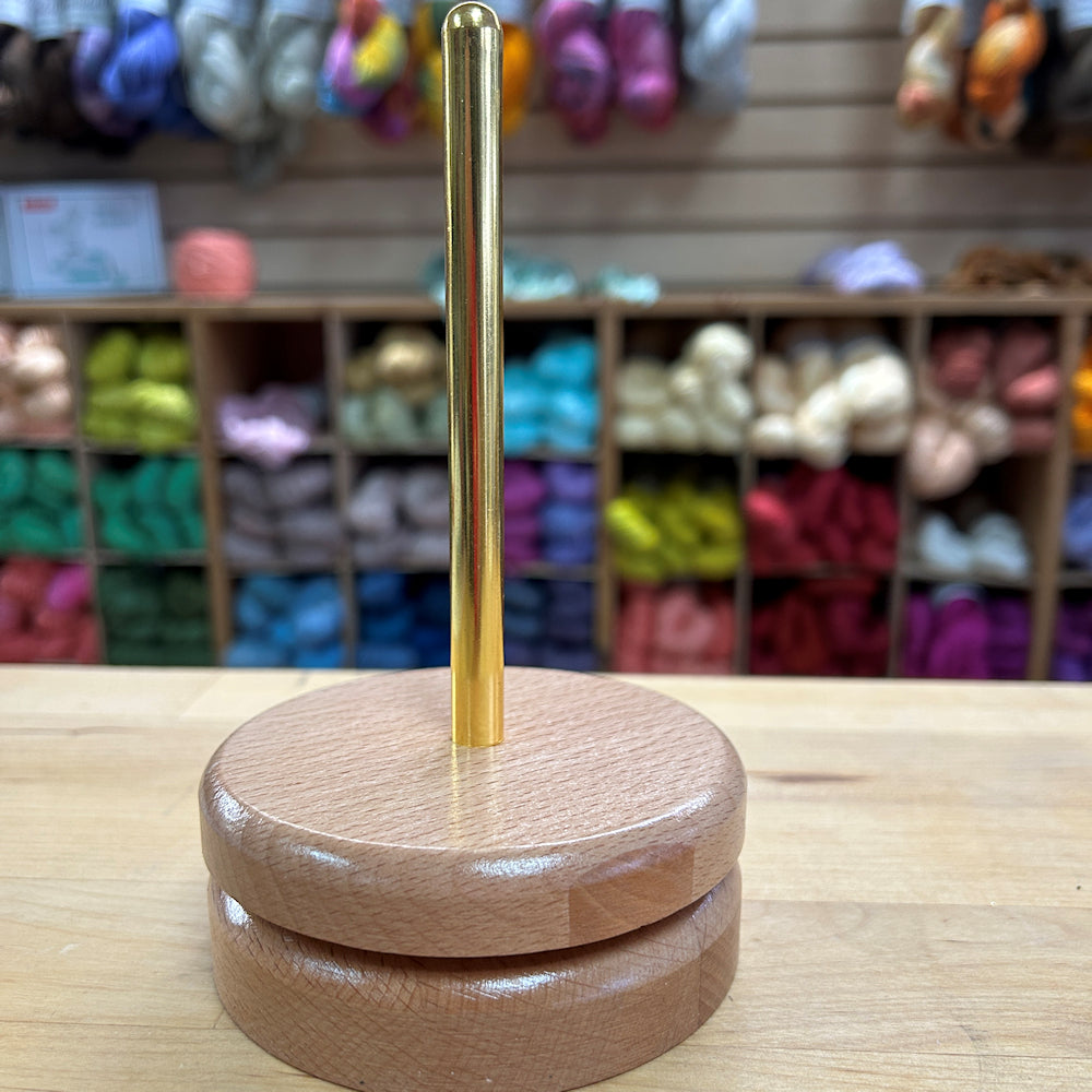 Need some assistance with your knitting? Place your ball of yarn on the spindle and allow the yarn to spin easily as you knit or crochet. Approximately 4″ (10 cm) x 7″ (18 cm).